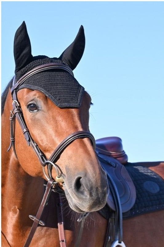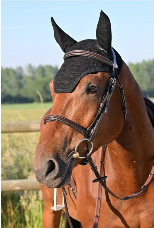 Ce bonnet est un accessoire essentiel pour tous les chevaux gênés par les insectes, les intempéries et aussi, bien souvent, le bruit. Le bonnet Jump'In protège le cheval de tous ces parasites extérieurs et favorise la concentration et le calme du cheval. Le bonnet pour chevaux Jump'In est composé d'une partie en crochet sur le front et d'un tissu ultra-stretch sur les oreilles ce qui lui permet de s'adapter à de nombreuses tailles différentes.
