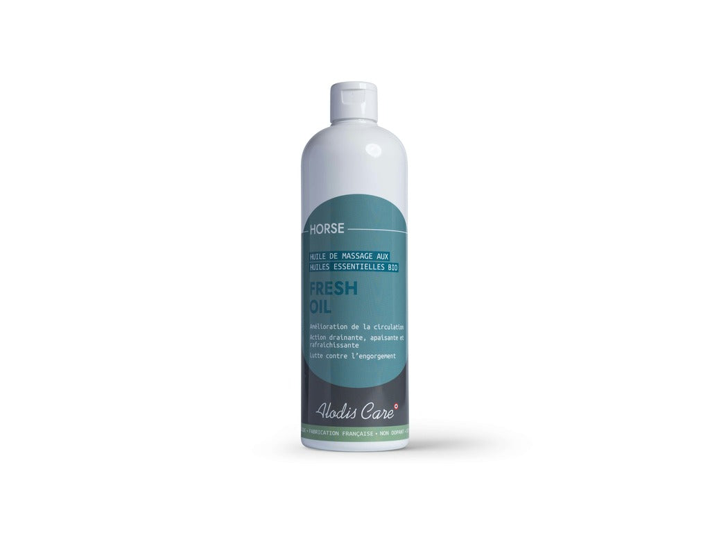 La Fresh Oil est une huile de massage à base d'huiles essentielles aux vertus rafraichissantes, circulatoires et apaisantes pour le corps et les membres de votre cheval.