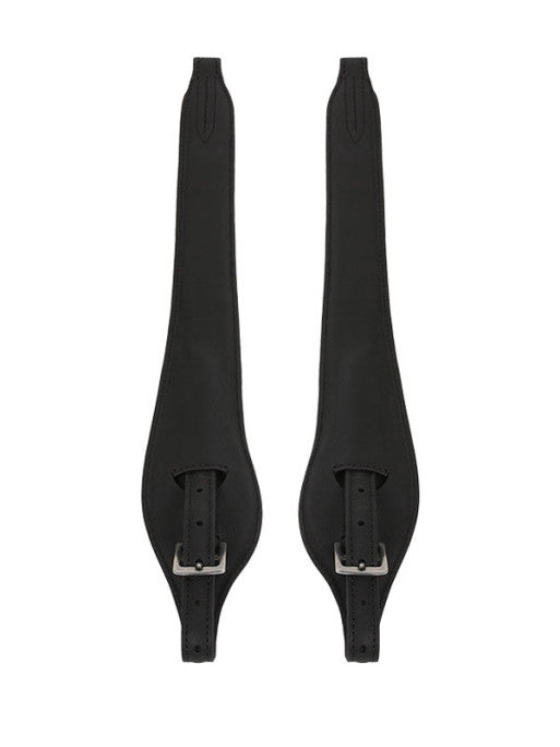 Grâce à leur largeur, ces étrivières améliorent la position et la fixation de la jambe, ce qui maintient l’équilibre du cavalier. La boucle positionnée bas élimine toute surépaisseur sous l’enfourchure, évitant ainsi toute gêne au niveau du petit quartier, contrairement aux étrivières traditionnelles. Les tranches ont été spécialement repensées pour réduire l’usure des quartiers de la selle, et les coutures sont encastrées avec un fil tressé résistant à l’abrasion, renforcé par un intérieur en nylon pour prévenir tout risque d'allongement. Le large passant pour le couteau permet une mise en place facile et rapide des étriers, et les désignations "R" pour droite et "L" pour gauche assurent une utilisation sans confusion. Ces étrivières sont idéales pour les selles d'obstacle et sont compatibles avec tous les types d'étriers.